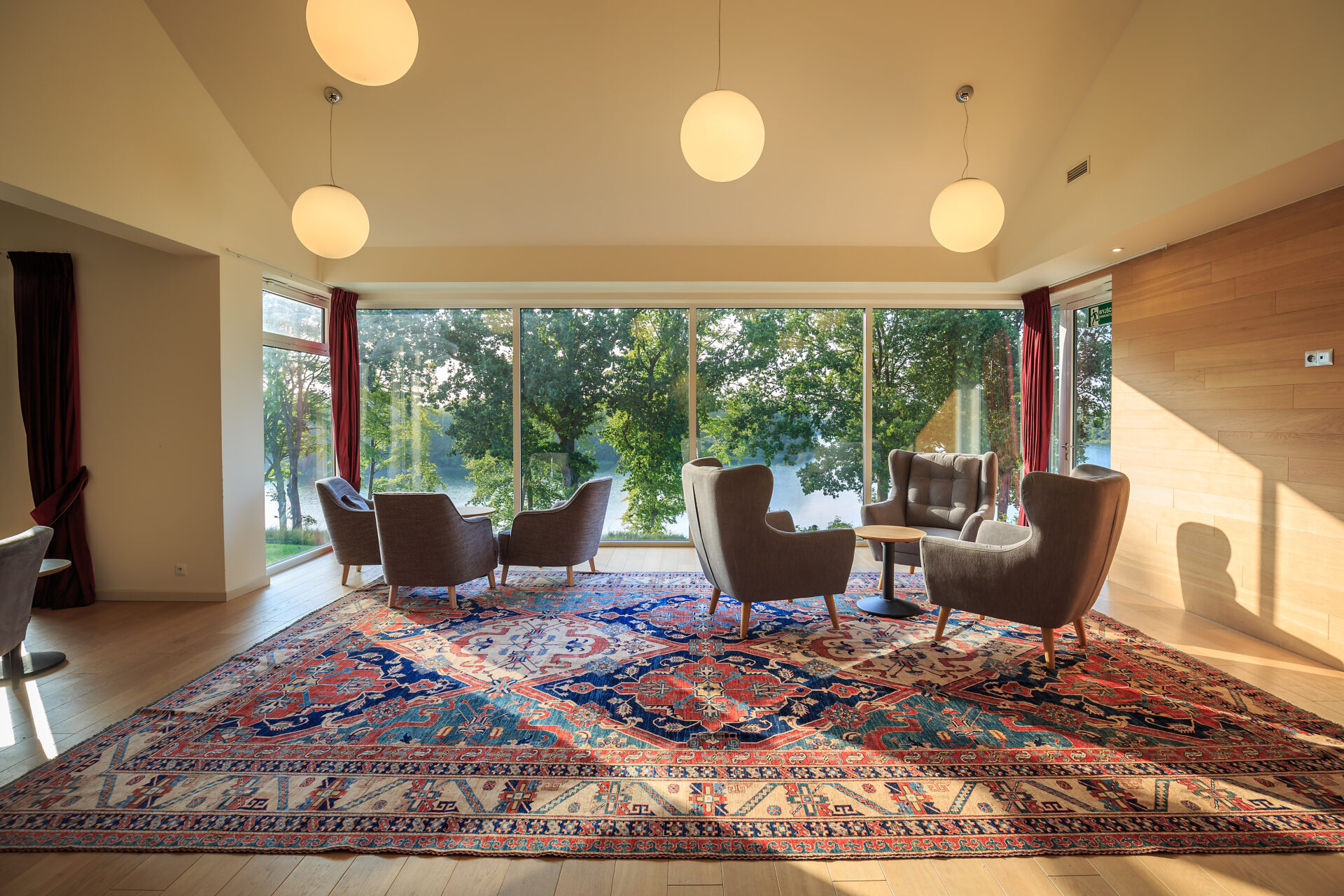 Het resort biedt een combinatie van rustieke charme en moderne comfort. Je verblijft in elegante houten lodges of luxe kamers in het Clubhouse Hotel, allemaal omgeven door bos, meren en perfect gemaaide fairways. Alles staat in het teken van rust, ruimte en hoogwaardige service.